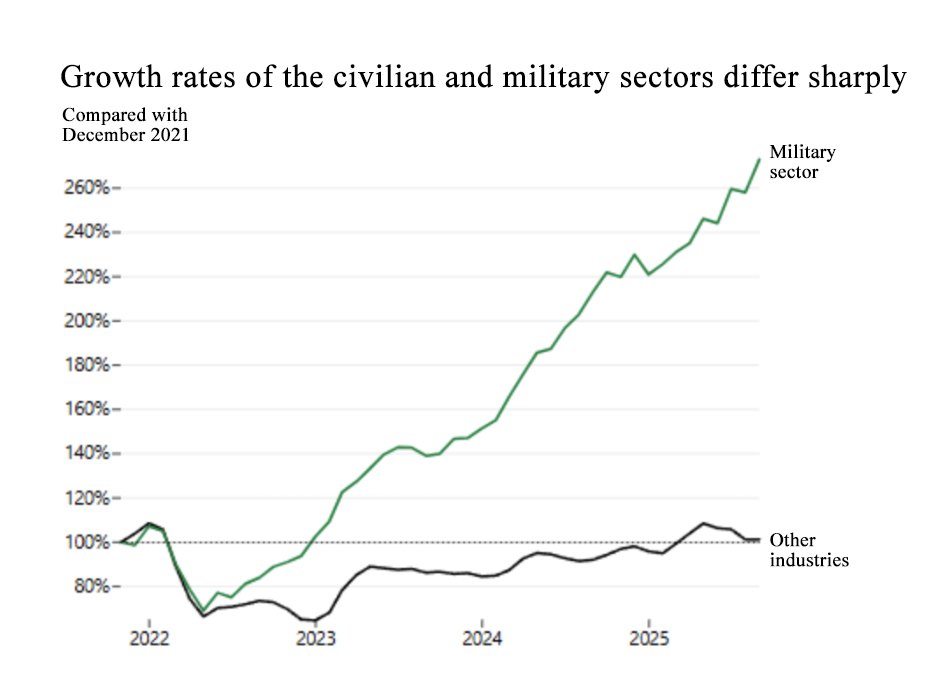 In contrast, civilian industry is losing ground. At the start of 2025, its nominal hryvnia output surpassed the December 2021 level for the first time. However, this gain proved short-lived: the energy crisis, Russian strikes and high production costs quickly erased all progress.