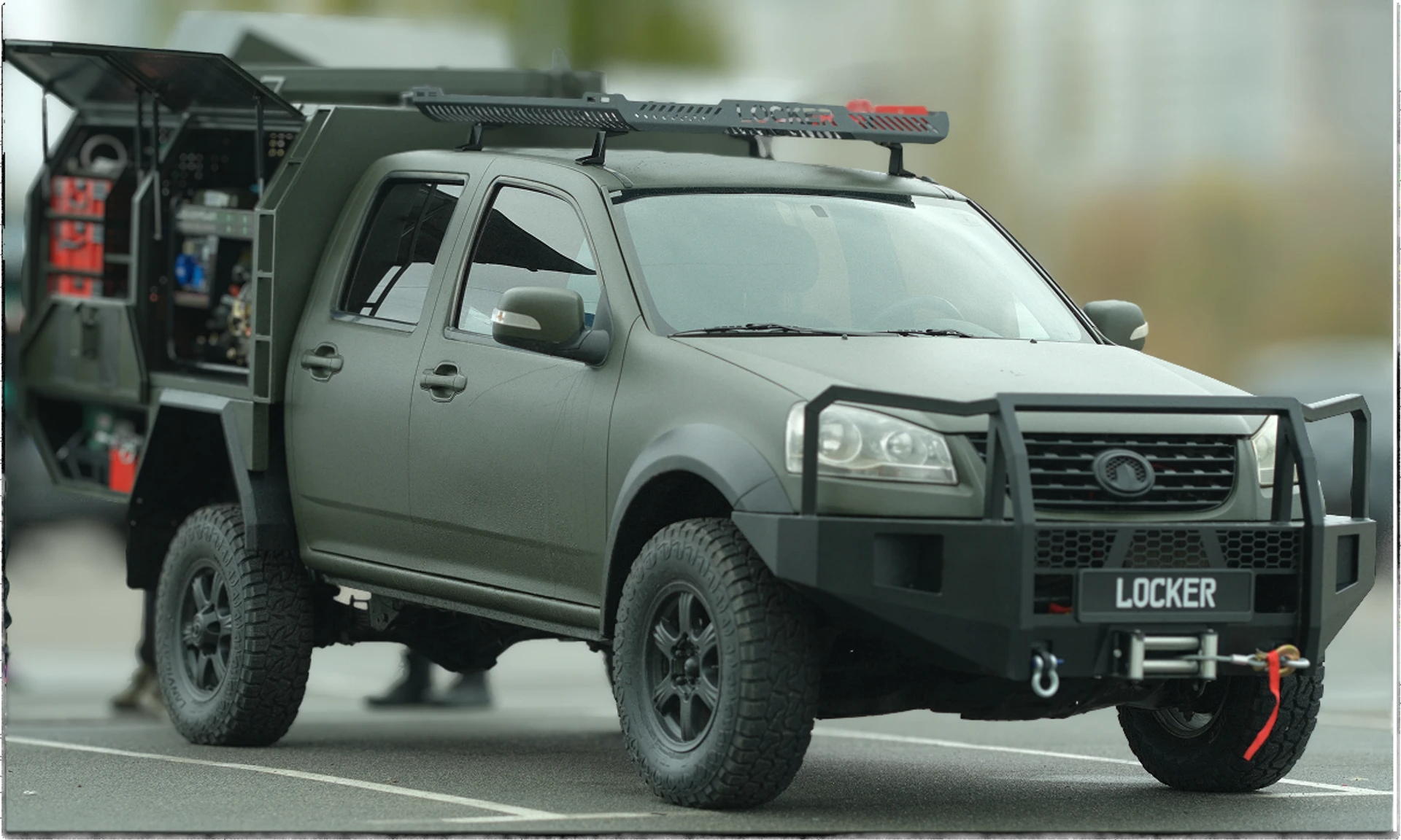 "In fact, it's a rapid-response vehicle," Locker representative Mykyta told Ukrainska Pravda. "Its mission is to deploy as quickly as possible, carry out repairs, and then pack up and move just as fast. We receive pickups in various conditions. We remove the body, reinforce and extend the frame, strengthen the springs, and install new shock absorbers.