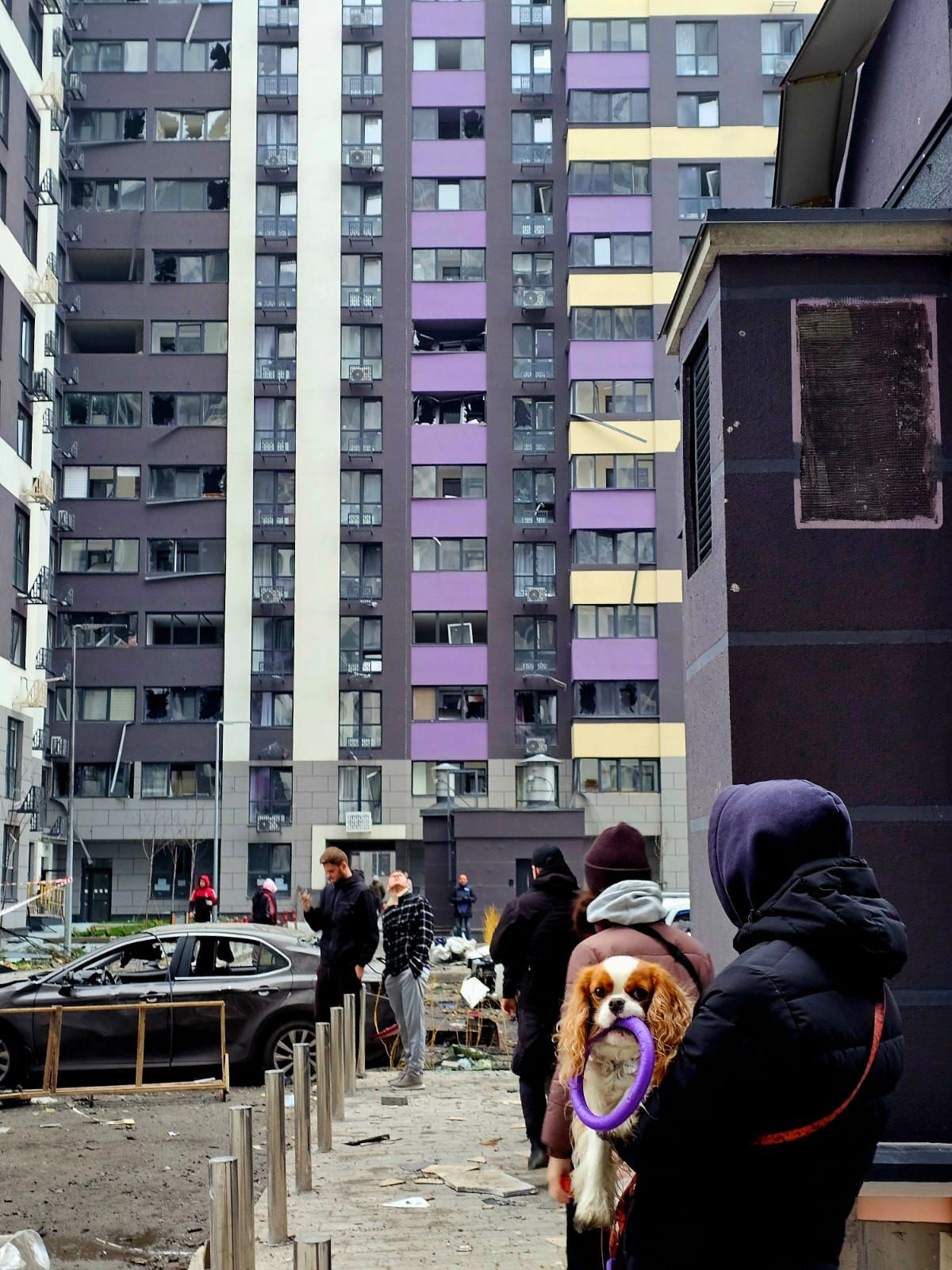 In the Sviatoshynskyi district, a person was killed when Russian forces struck a residential building. Neighbours of the deceased said the impact came at about two in the morning.
