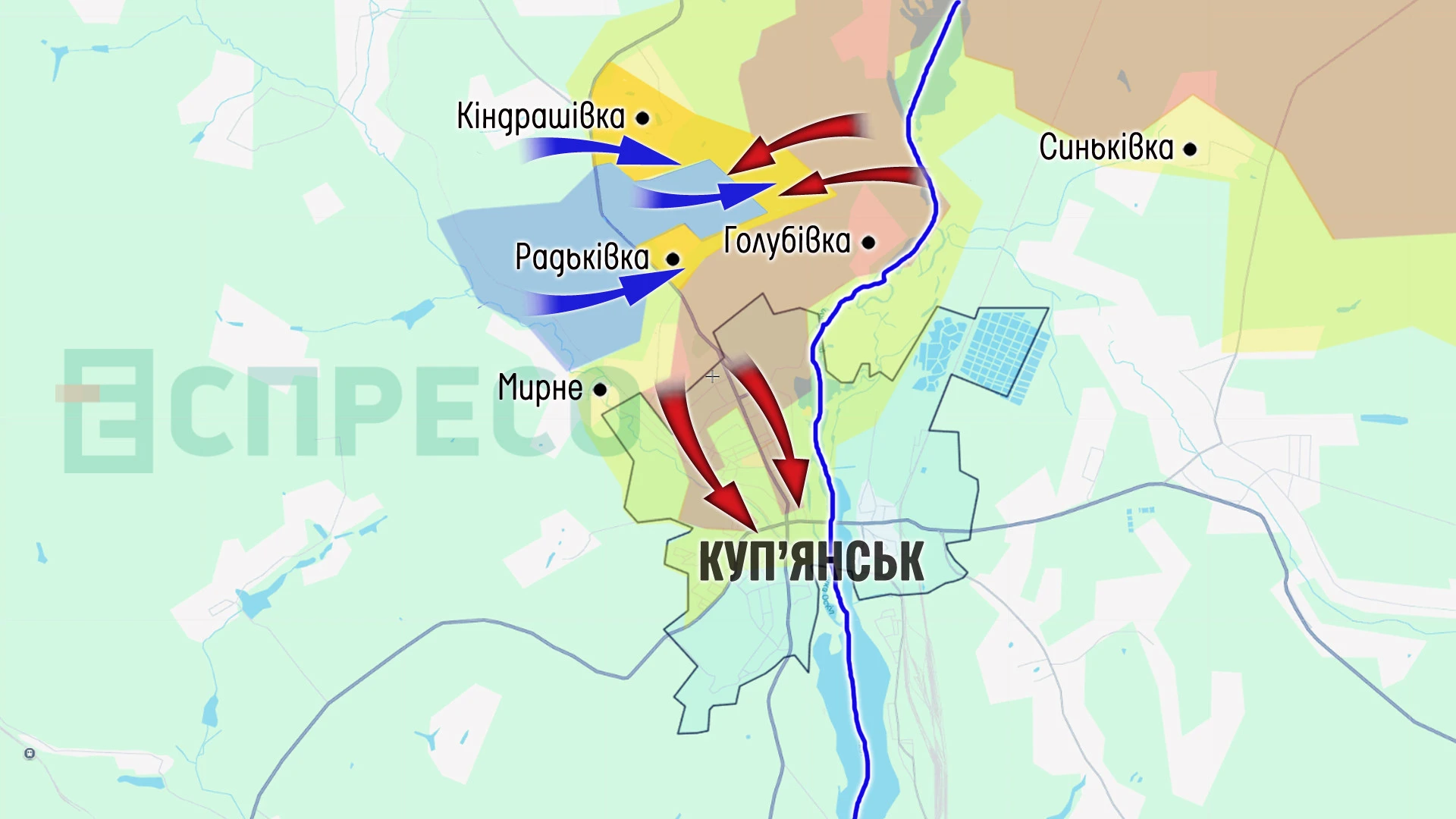 This week, Putin's forces, after months of fighting, captured the border villages of Odradne and Bolohivka and began the assault on Dvorichanske, for which the Ukrainian Defense Forces are now fighting and have successful counterattacks. Their main goal is the Ukrainian fortified area in Kolodiazne. From Odradne, Russian forces plan to attack the road west of Kolodiazne to cut one of the two logistics routes.They are attacking the second route in the Novovasylivka area.