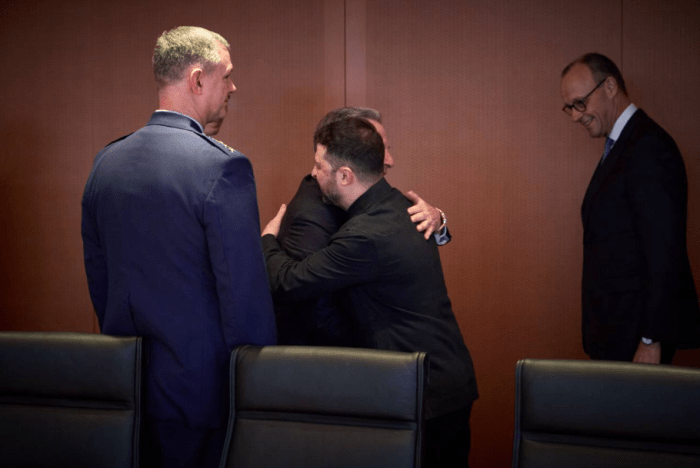 At 5:23 PM, the Ukrainian leader announced the start of the meeting with the American and German teams.