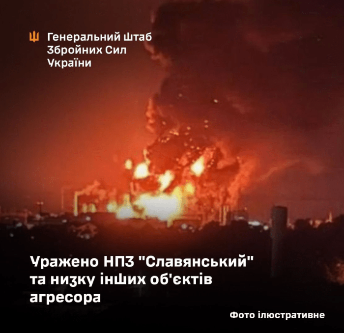 Last night, units of the Defense Forces powerfully attacked the infrastructure of the Slavyansky oil refinery in the city of Slavyansk-on-Kuban in the Krasnodar Territory of the Russian Federation — a large-scale fire broke out.
