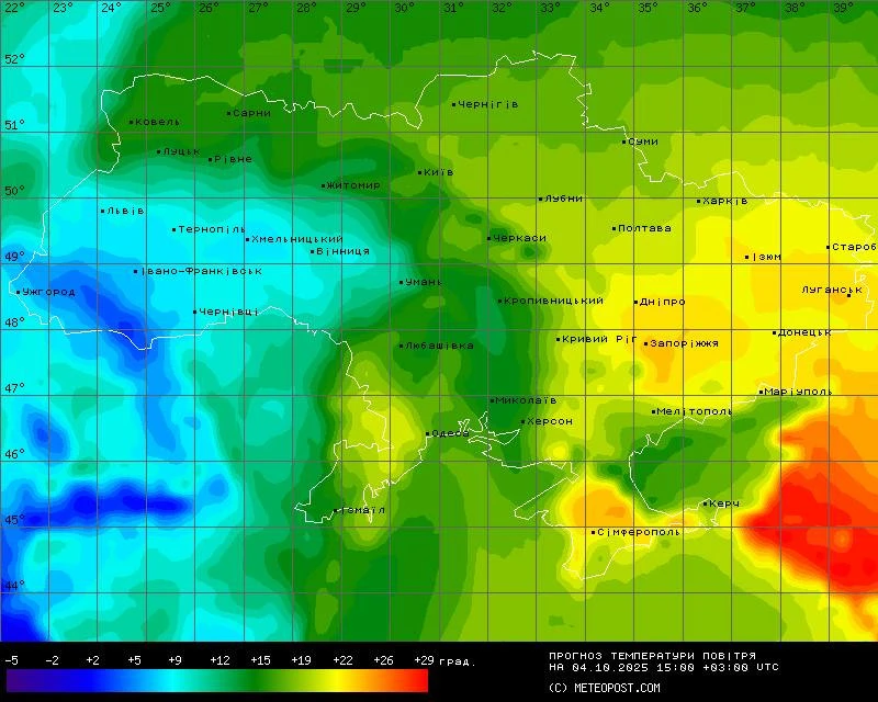 Про це синоптикиня Наталка Діденко написала на своєму Telegram-каналі.Погода по регіонахУ західних областях прогнозується +9…+12 °C.На півночі — +12…+14 °C.У центральних регіонах — +12…+18 °C.На півдні — +15…+19 °C, у Криму до +20 °C.На сході очікується +15…+18 °C.Дощі в суботу пройдуть на Одещині, Миколаївщині, Івано-Франківщині та у Чернівецькій області. Ввечері опади поширяться на центральні та північні регіони. На решті території буде без опадів.У неділю дощі ймовірні на півдні (крім Одещини), у східних областях та місцями на заході. В інших регіонах — сухо.Погода у столиціУ Києві на вихідних буде переважно без опадів, лише в суботу ввечері можливий короткочасний дощ.Денна температура повітря коливатиметься в милосердних межах, очікується у столиці +14…+15 °C."Варимо гарбузову кашу, збираємо гриби, йдемо грітися на вулиці, бо опалення хоч і оголосили, але до тепліших реалій ще походимо у теплих флісових штанах, стежимо за погодою і з пʼятниці по неділю обов’язково вітаємо улюблених учителів із їхнім Днем", - підсумувала Наталка Діденко.