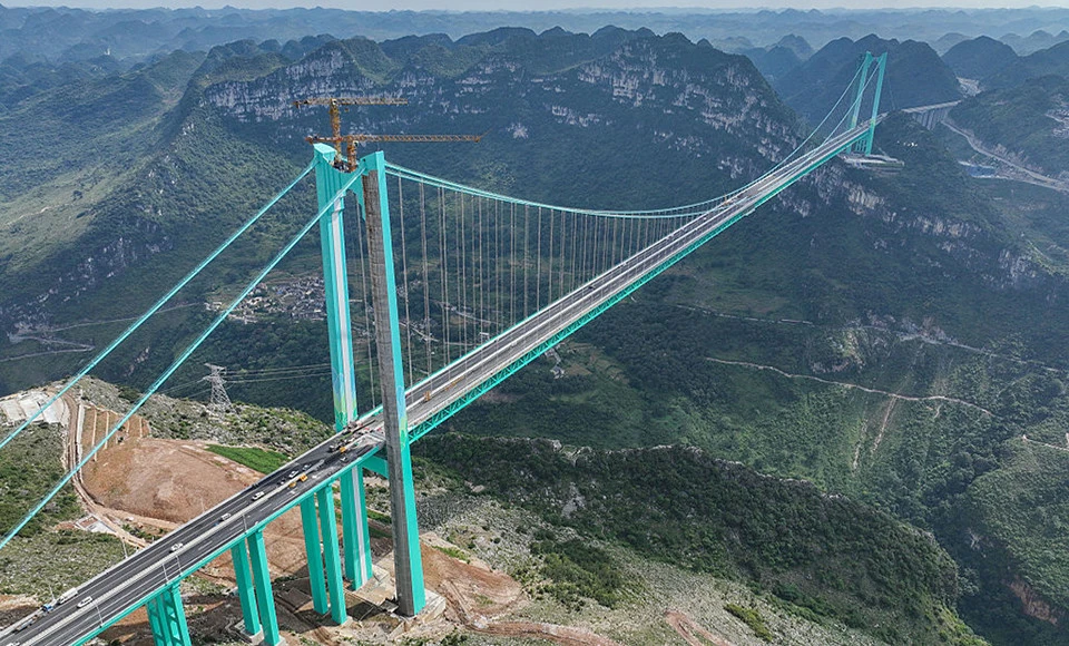 фото: GettyImagesБудівництво мосту розпочали ще 18 січня 2022 року, і тривало близько 3 років й 8 місяців. Його поява обійшлась Китаю у 341 мільйон доларів. Але очікується, що така трансформація підвищить доступність і стимулюватиме економічну діяльність, яка раніше була обмежена географічною ізоляцією.Проте за цим грандіозним проєктом стоять не лише великі гроші, але й найсучасніші інженерні рішення. Будівельники використовували супутникову навігацію, дрони, надміцні матеріали та інтелектуальні системи моніторингу, щоб досягти міліметрової точності.Ця інженерна конструкція, окрім як спростити шлях для мешканців провінції, покликана також допомогти наразі трохи депресивній провінції Гуйчжоу стати туристичним напрямком світового класу. Міст вже є туристичною атракцією: відвідувачі можуть піднятися ліфтом на оглядовий майданчик зі скляними стінами, випити кави в кафе на вершині вежі мосту або навіть ризикнути на банджі-джампінг чи спуститися парашутом над каньйоном.Окрім того, покращення транспортного сполучення може сприяти кращому доступу до освіти, охорони здоров'я та економічних можливостей. Тому те, як місцеве населення пристосується до цих змін, буде мати вирішальне значення для визначення довгострокового успіху цього амбітного проєкту.Щодо більш глобальних значень, от успішне завершення проєкту створює прецедент для майбутніх розробок у складних місцевостях, надаючи корисну інформацію про те, як можна долати географічні обмеження.Китай б'є свої ж рекорди: де розташований попередній найвищий міст та його колегиЗбудувавши міст Хуацзян Гранд Каньйон, китайці побили свої ж інженерні рекорди, адже попередні кілька рекордсменів також розташувалися на території КНР.Зокрема, перед інженерною новинкою у грудні 2016 році сконструювали у тій же самій провінції Гуйчжоу міст Бейпаньцзян, або ж Duge Beipanjiang Bridge. Він став частиною швидкісної автомагістралі між Ліцзян і Гуйян. Висота його дорожнього полотна над землею складає 565 метрів. Довжина мосту сягає понад 1,3 кілометра. Одним із його завдань також було скоротити тривалість поїздок між двома провінціями.