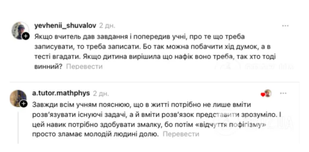 Проте більшість коментаторів не підтримала маму. Українці зазначили, що вчитель має право вимагати запису рішень, адже важливо бачити сам хід думок школяра, а не лише підсумкову відповідь.