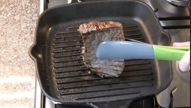 Підготуйте м’ясо. Змастіть обидві сторони стейка олією та покладіть його на добре розігріту сковороду-гриль. Смажте 3-4 хвилини з кожного боку до середньої просмаженості. Нарешті, обсмажте боки. Дайте йому відпочити 3 хвилини та змастіть обидві сторони соусом теріякі.
