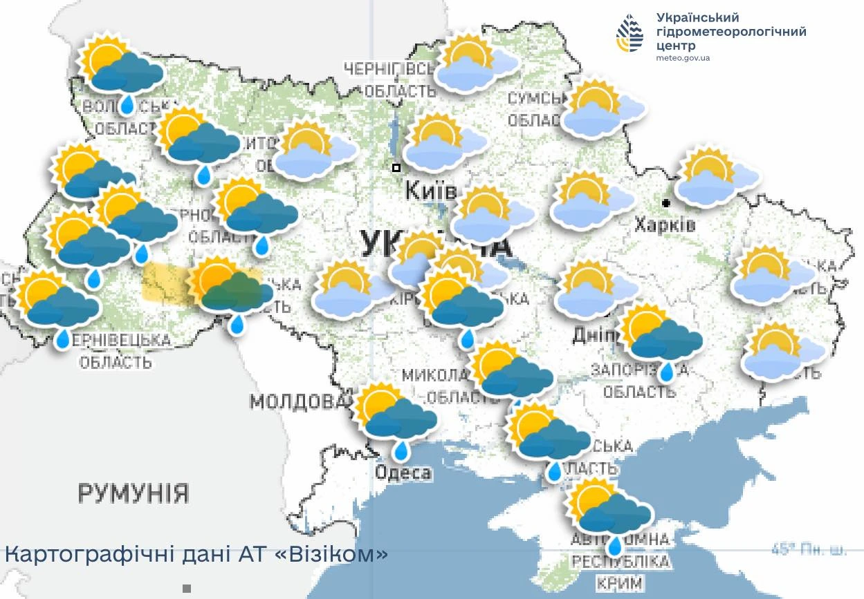 Деталі : В Україні хмарно з проясненнями. На заході та півдні країни невеликі дощі, на решті території без опадів. Вночі та вранці в Карпатах місцями туман.