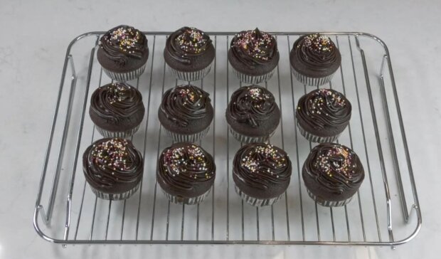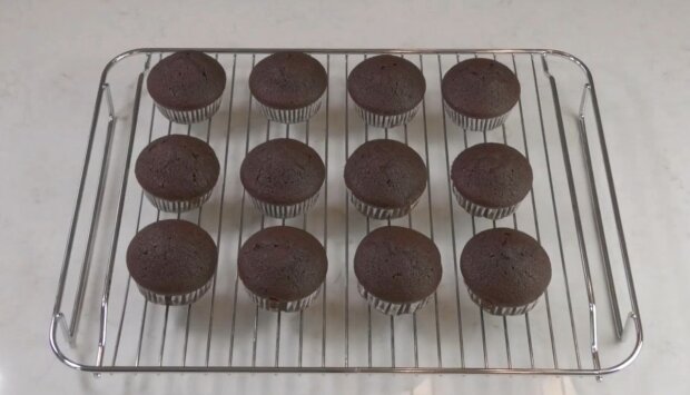 Помістіть випечені кекси на решітку у формы для випікання приблизно на 5 хвилин, щоб вони трохи охолонули. Після цього вийміть кекси з форми та дайте їм повністю охолонути.