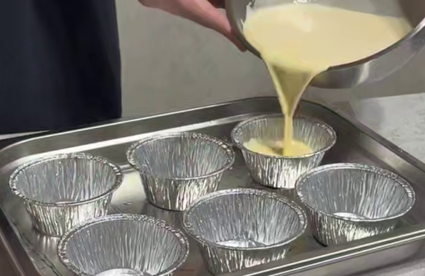 Розлийте по формах і поставте їх у лист. Налийте окріп так, щоб вода доходила до середини форм.