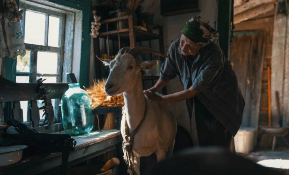 Кадр з новели "Торпеда" кіноальманаху "Війна очима тварин". У головній ролі Ольга Мартинишин, фото: SOTA Cinema GroupВиконавицею головної ролі у новелі "Торпеда" стала 70-річна Ольга Мартинишин: вона ніколи до цього не грала в кіно, але є популярною блогеркою зі Львова. На її сторінках у соцмережах можна знайти рецепти соління помідорів, поради по вирощуванню городини тощо.