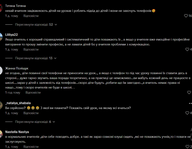 Одна коментаторка зауважила, що в Європі діти, приходячи до школи, здають телефони, і всі нормально до цього ставляться.