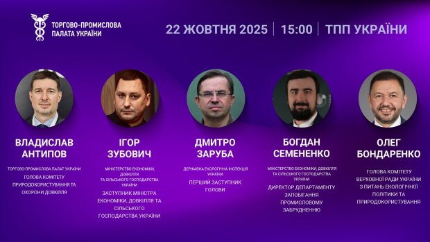 Модератором заходу виступить Владислав Антіпов — голова Комітету підприємців з питань природокористування та охорони довкілля ТПП України.