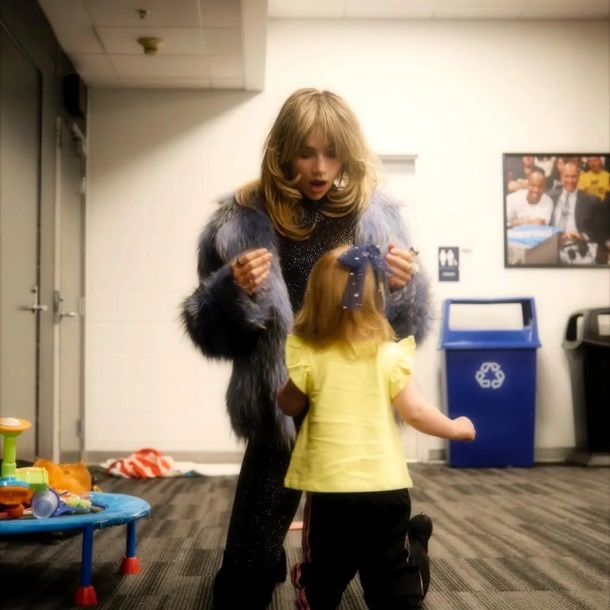 На своїй сторінці в Instagram артистка опублікувала серію знімків із повсякденного життя -з концертів і закулісся. На одному з фото видно, як Сьюкі сидить навпроти півторарічної дочки. Дівчинка одягнена у жовту футболку та чорні штани, а на голові -блакитний бантик.