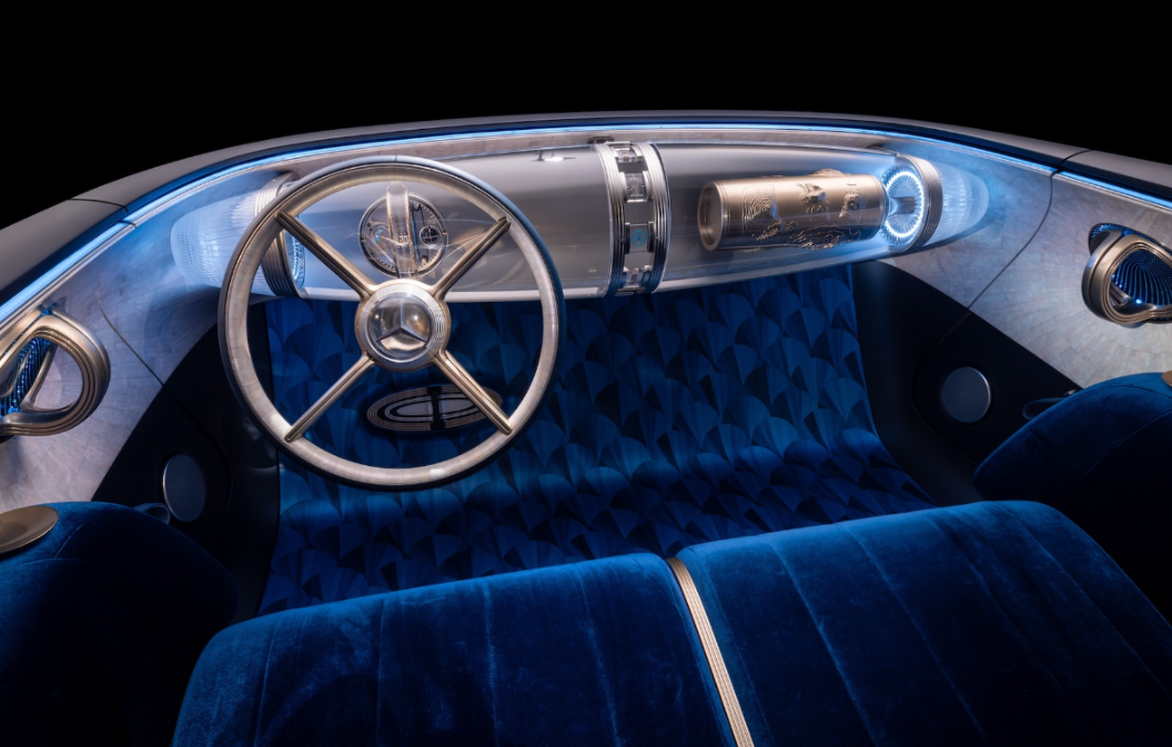 Також усередині використані перламутрові вставки, а підлога прикрашена солом'яним візерунком у техніці маркетрі, що з'явилася у XVII столітті та відроджена у 1920-ті роки. Крім того, автовиробник створив колекцію із шести чоловічих та жіночих костюмів, які гармонують з інтер'єром.