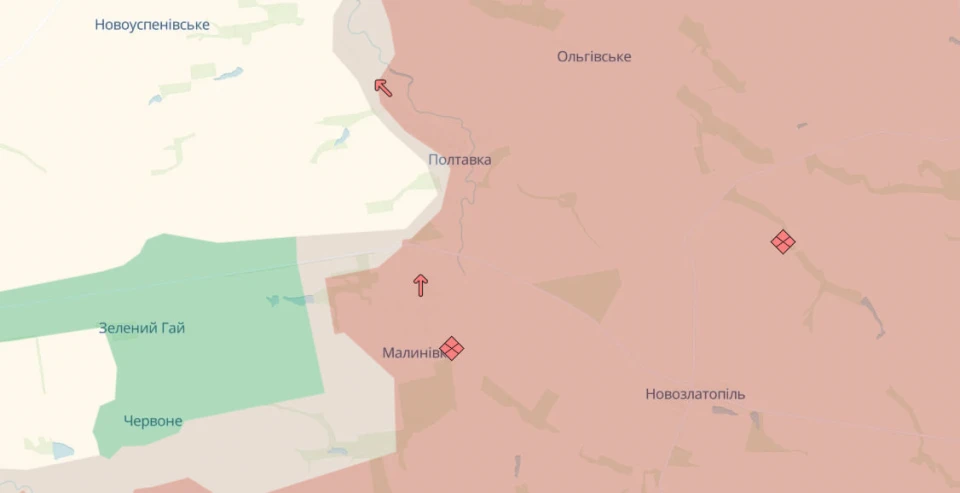 Про це повідомляє інформаційний OSINT-проєкт DeepState.Просування зафіксовано поблизу трьох населених пунктів: Новоіванівки та Малинівки у Запорізькій області та Полтавки у Донецькій області."Ворог просунувся поблизу Новоіванівки, Малинівки та у Полтавці", - йдеться у повідомленні.