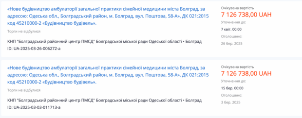 Комунальне некомерційне підприємство «Болградський районний центр первинної медико-санітарної допомоги» уклало договір на будівництво нової амбулаторії сімейної медицини у місті Болград без проведення електронних торгів. Про це повідомляє "Антикоррупційний вимір" .