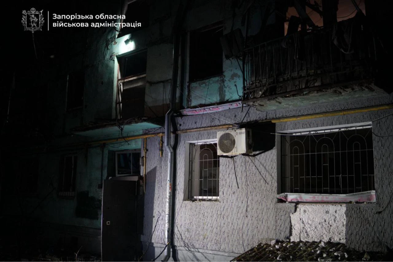 Опублікували фотографії наслідків нічної російської атаки на Запоріжжя. На знімках видно пошкоджені багатоповерхівки, приватні будинки та згорілі автомобілі.