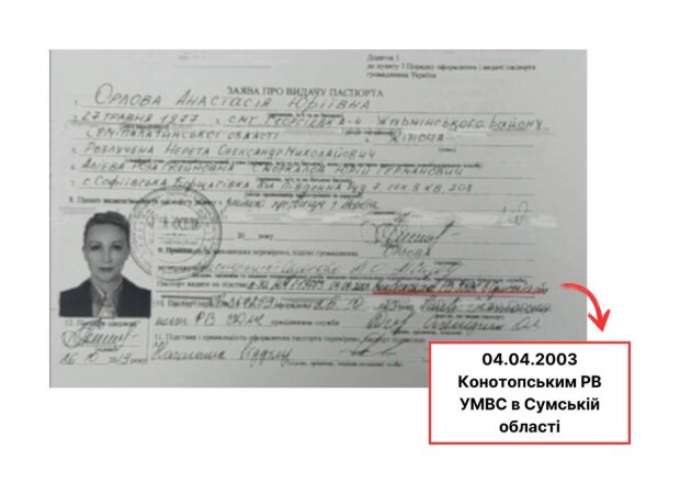 Згідно з документами, 2003 року вона подала заяву на отримання українського паспорта, проте, за даними Державної міграційної служби Сумської області, видача їй такого документа не підтверджується.