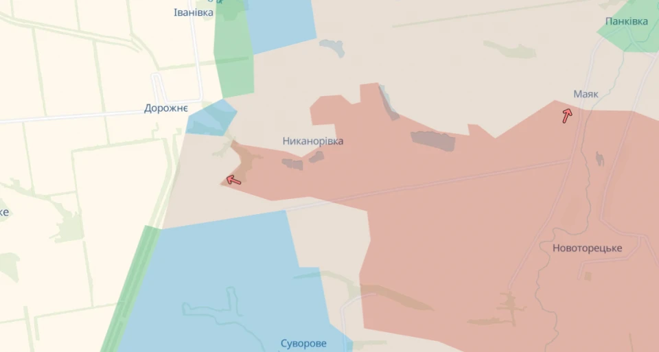 Про це інформує інформаційний OSINT-проєкт DeepState.За даними мапи бойових дій, окупанти просунулися поблизу Одрадного та Злагоди в Донецькій області, а також у районі Вишневого на Дніпровщині.Крім того, уточнено ситуацію в районі Никанорівки Донецької області."Ворог просунувся поблизу Одрадного, Вишневого та Злагоди. Уточнено ситуацію в Никанорівці". - йдеться у повідомленні.