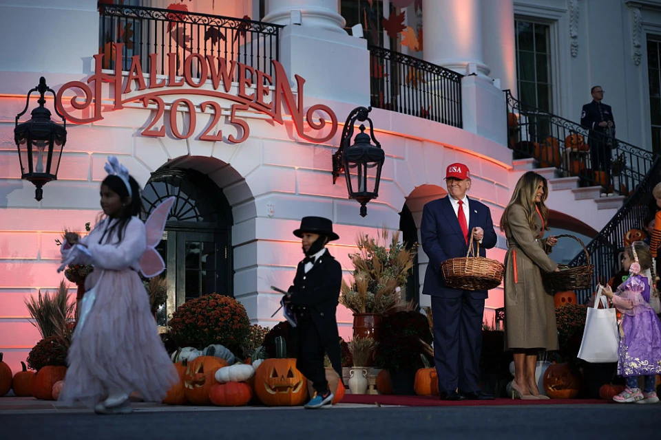 фото: Getty Images фото: Getty Images Святкування на тлі шатдаунуТрадиційне святкування в Білому домі відбулося, попри те що Трамп повернувся лише за кілька годин до цього після шестиденного турне країнами Азії і на тлі урядового шатдауну, який триває вже тридцятий день.Трамп закликав відновити роботу уряду, однак демократи в Конгресі вимагають продовжити дію податкових пільг, які допомагають мільйонам людей оплачувати медичне страхування. Їхні колеги-республіканці заявляють, що не вестимуть переговорів, доки уряд не буде знову відкрито.Як відмітили у виданні, запроваджені Трампом мита на імпорт із Китаю призвели до скорочення запасів і підвищення цін на геловінські костюми для американських імпортерів, роздрібних продавців і покупців. Попри це, фасад Білого дому прикрасили десятки декорацій у вигляді великих осінніх листків і квітів, зокрема помаранчевих і червоних хризантем. Сходи, що ведуть до балкона, були заставлені вирізаними гарбузами.Хто відвідав захід? Серед дітей, які відвідали святкування, були діти військовослужбовців і співробітників Білого дому. Прессекретарка Білого дому Каролайн Левіт прийшла зі своїм маленьким сином, одягненим у костюм гарбуза. Колишня співробітниця адміністрації Трампа Кеті Міллер була вбрана у скелета, тоді як її чоловік, заступник керівника апарату Білого дому Стівен Міллер, обмежився діловим костюмом.Сотні дітей – від малюків до підлітків – прийшли в костюмах Людини-павука, Капітана Америки, балерин, принцес і лепреконів. Двоє хлопчиків були в костюмах і кепках із прізвищем Трампа та з усмішками, схожими на президентську, хоча наслідувати його фірмову зачіску вони не намагалися. Дівчинка, що була з ними, одягла білий плащ поверх сукні – подібної до тих, які зазвичай обирає перша леді. Дехто з батьків вдягли кепки з написом "USA", як у Трампа.