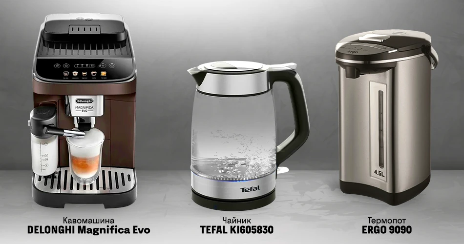 Фокстрот, фото: ФокстротПрокидатися набагато легше, коли вдома пахне свіжозмеленою кавою. Автоматична кавомашина DELONGHI Magnifica Evo ECAM293.61.BW (20 999 ₴* замість 28 999 ₴, код 7157948) варить 2 чашки одночасно в один дотик та є вибір з 5 різних напоїв. Вбудований капучинатор створює густу молочну піну, а 13 рівнів налаштування помелу дозволяє підібрати ідеальний смак під вас. А завдяки системі автоочищення, що промиває капучинатор за допомогою води і гарячої пари, ваші напої збережуть неперевершену свіжість з кожним заварюванням.Ще один фаворит кавоманів – KRUPS EA89ZB10 (18 799 ₴ замість 37 399 ₴, код 6925719). Ця модель готує аж 8 різних напоїв – від американо до гарячої води для чаю. Автоматичне очищення системи спрощує догляд, а тихий помел робить ранковий ритуал приємним навіть для сонних домочадців.Любителі сучасного дизайну оцінять PHILIPS EP4346/71 (25 999 ₴ замість 43 399 ₴, код 6988912) – кавомашину з інтелектуальним управлінням, персональними профілями та фільтром AquaClean, який не потребує очищення від накипу до 5000 чашок. З нею кава смакує, як у кав’ярні, але вдома. А також є 10 напоїв на вибір.Коли не хочеться кави, то допоможе ароматний чай або гарячий трав’яний напій. Електрочайник GORENJE K 15 DWBK (999 ₴ замість 1 369 ₴, код 6903315) на 1,5 л швидко закипає, а його стильний чорний корпус із підсвіткою створює затишну атмосферу навіть у темний осінній ранок.Для тих, хто цінує практичність і тишу, стане у пригоді чайник TEFAL KI605830 (2 099 ₴ замість 2 599 ₴, код 7053674). Його двошаровий корпус не нагрівається зовні, тому користуватися ним безпечно, а об’єм 1,7 л дозволяє приготувати чай для всієї родини.А якщо відключили світло, виручить термопот ERGO 9090 (1 899 ₴, код 7096774) на 4,5 л. Він підтримує температуру води протягом тривалого часу, що зручно для приготування каші дитині чи улюблених напоїв без повторного кип’ятіння.Обігрівачі для теплого домуОсінній холод приходить раптово, тому краще зустріти його підготовленими. Інфрачервоний обігрівач INTERLUX INR-0800W (549 ₴ замість 899 ₴, код 6786377) прогріває невеликі кімнати площею до 9 м² за лічені хвилини. Його світло м’яке, не сушить повітря, а вбудований захист від перегріву додає безпеки.Якщо потрібно більше потужності, зверніть увагу на конвектор HYUNDAI HHC-2000UA (2 699 ₴ замість 3 199 ₴, код 7180048). Тихий, ефективний і зручний у користуванні. Він підтримує комфортну температуру в кімнаті площею до 23 м².Для тривалого й рівномірного обігріву підійде масляний обігрівач HYUNDAI H09HTRB  (2 599 ₴ замість 2 999 ₴, код 7186322). Він зберігає тепло для площі до 20 м², а також після вимкнення ще гріє та не сушить повітря, що є варіантом для спальні або дитячої.А якщо шукаєте інше локальне швидке рішення – тепловентилятор INTERLUX INF-0080B (599 ₴ замість 899 ₴, код 7180430) допоможе швидко зігріти робоче місце чи кабінет до 20 м².