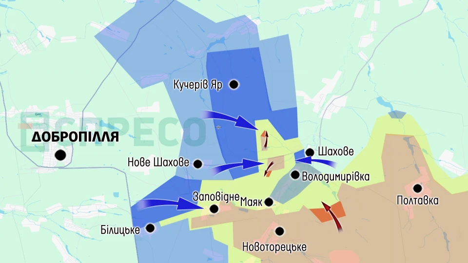 Добропілля – останні дні російського проривуВже очевидно, що оточені путіністи між селами Шахове та Нове Шахове доживають останні дні. Кільце довкола них щодня звужується, а захоплена територія скоротилась до кількох лісопосадок. Тим часом окупанти все ще атакують у напрямку Володимирівки та за останні кілька днів мали незначне просування на декілька сотень метрів.