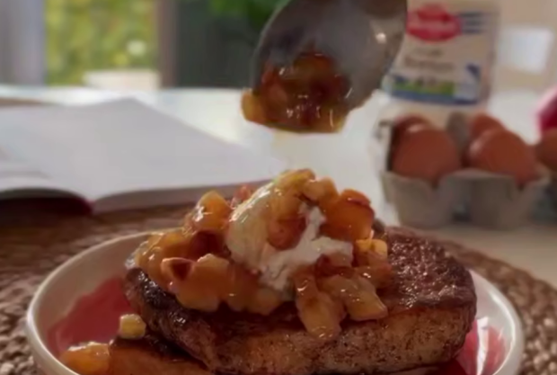 Що може бути краще за початок дня з ароматних тостів, просочених корицею та ваніллю, з теплою карамеллю з яблук?