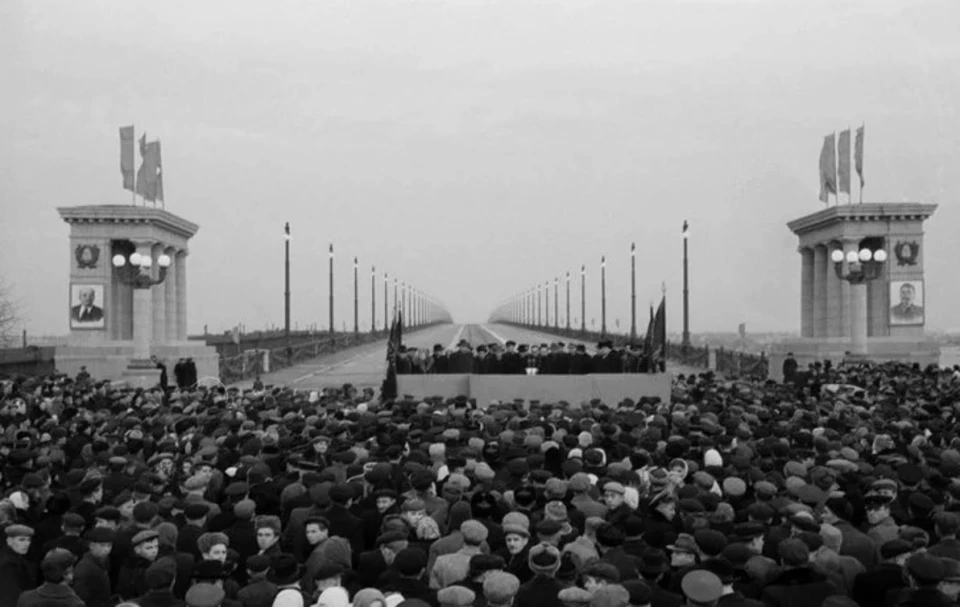 Відкриття мосту Патона у 1953 році, фото: ЦДКФФА України імені Пшеничного / villageБудівництво мосту Патона – це історія наполегливості та інновацій, що сягає ще 1930-х років. Видатний український інженер, академік Євген Патон, завідувач кафедри Київського політехнічного інституту, мріяв про революційну технологію з'єднання металевих конструкцій без традиційних заклепок. Замість них – електрозварювання, яке мало забезпечити міцність і довговічність. Патон витратив декілька років на переконання скептиків, адже дві попередні спроби зварювання на менших об’єктах провалилися через недостатню міцність швів. Лише з третьої спроби, за участю його Інституту електрозварювання, технологія була достатньо удосконалена. Під його керівництвом було винайдено спосіб автоматичного швидкісного зварювання, який відіграв визначну роль у технічному розвитку.Варто відзначити, що Євген Патон до цього створив два мости в Києві: Парковий міст ще за Російської мерії у 1910 році, а також на опорах зруйнованого Миколаївського ланцюгового моста через Дніпро ним був спроєктований міст імені Євгенії Бош, згодом знищений при відступі радянської армії. Тож роботи над головним дітищем Патона розпочалися в 1939 році поруч старого Наводницького мосту. Однак у 1941-му році будівництво зупинили через нацистську окупацію. На початку 1942 року на побудованих опорах мосту німцями було продовжене будівництво. З’явився тимчасовий міст, який отримав назву на честь німецького воєначальника часів Третього Рейху, генерал-фельдмаршала Вальтера фон Райхенау. Однак цей міст був зруйнований при відступі гітлерівців у 1943 році. Після повернення радянської влади, новий міст було перепроєктовано. Його довжина стала 1543 метри (на 300 метрів довше за Хрещатик), маса металевих конструкцій – 10 тисяч тонн, ширина проїзної частини – 21 метр, тротуари – по 3 метри з кожного боку. Для випробування міцності по новій переправі проїхала колона танків – і міст витримав.Офіційне відкриття відбулося 5 листопада 1953 року, за три місяці після смерті Патона (12 серпня 1953-го, у 83-річному віці). Міст назвали на його честь, кажуть, що першим по ньому офіційно проїхав син вченого, Борис Патон, який продовжив роботу батька. Це була подія світового масштабу, адже це був перший у світі суцільнозварний магістральний міст, один з найбільших у Європі на той час, символ прогресу в післявоєнній Україні.Особливості конструкціїУнікальність мосту – у технології Патона. Суцільнозварна конструкція без заклепок (понад 10 тисяч зварних швів) забезпечила монолітність і стійкість до вібрацій від транспорту. Опори – кесонні, забиті в дно Дніпра на глибину до 20 метрів. Міст складається з семи прольотів, з яких судноплавні – 250 метрів завширшки. Цікаво, що під час будівництва використовували нестандартні методи. Наприклад, для підриву старих опор (щоб уникнути пошкоджень від води) вибухівку ізолювали в... гумових презервативах, які замовили у промислових обсягах, бо ще не було поліетиленових пакетів. Принаймні, така легенда вже давно переповідається.У 1967 році на мості сталася трагедія – з нього впав автобус заводу "Комуніст" з людьми, що призвело до зміни правил безпеки. У 1968 році на ньому вперше в СРСР встановили напівжорстку декоративно-художню огорожу – з мотивами квітів, фруктів і овочів, щоб підвищити безпеку. Як міст втр