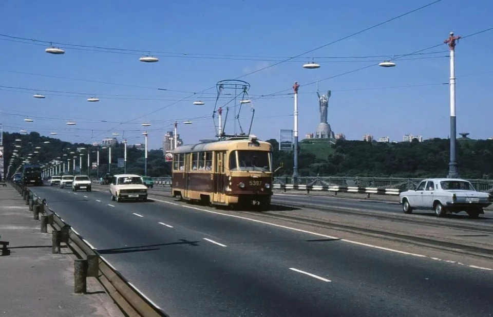 Трамвай їде мостом Патона у 1997 році, фото: BigkyivЗ 1953 року міст Патона став ключовою магістраллю, з'єднуючи обидва береги столиці з її численними районами. З 1 листопада 1954-го по 9 червня 2004-го по ньому курсувала трамвайна лінія – одна з найважливіших у Києві, що об'єднувала правобережну та лівобережну мережі трамвая. Трамваї перевозили тисячі пасажирів, додаючи шарму переправі та виконуючи важливу інфраструктурну роботу. Однак у 2004-му під час реконструкції колії демонтували, щоб розширити проїжджу частину до семи смуг (по три в кожному напрямку + реверсна), а трамваї замінили тролейбусами. Це розділило трамвайну систему Києва на дві ізольовані частини, і досі є петиції про відновлення цієї лінії.Про реконструкцію моста вперше заговорили з відновленням незалежності України, але традиційно постійно бракувало коштів. За понад 70 років існування моста його реконструювали лише один раз – у 2004 році, коли, як вже було згадано, демонтували трамвайні колії. З того часу стан моста суттєво погіршився через корозію всієї конструкції.Сучасний стан: аварійний гігант з планами порятунку