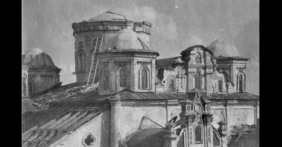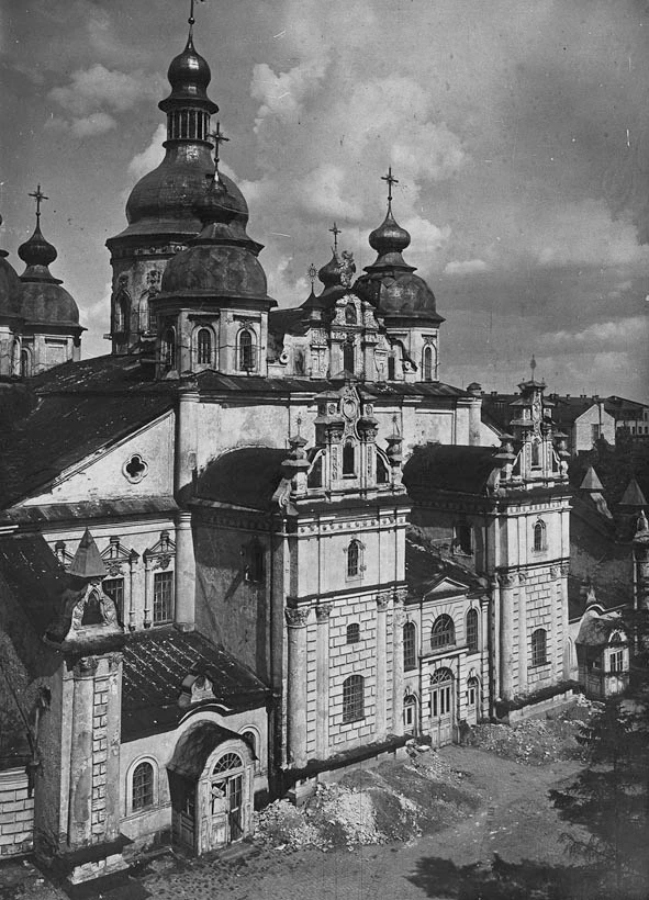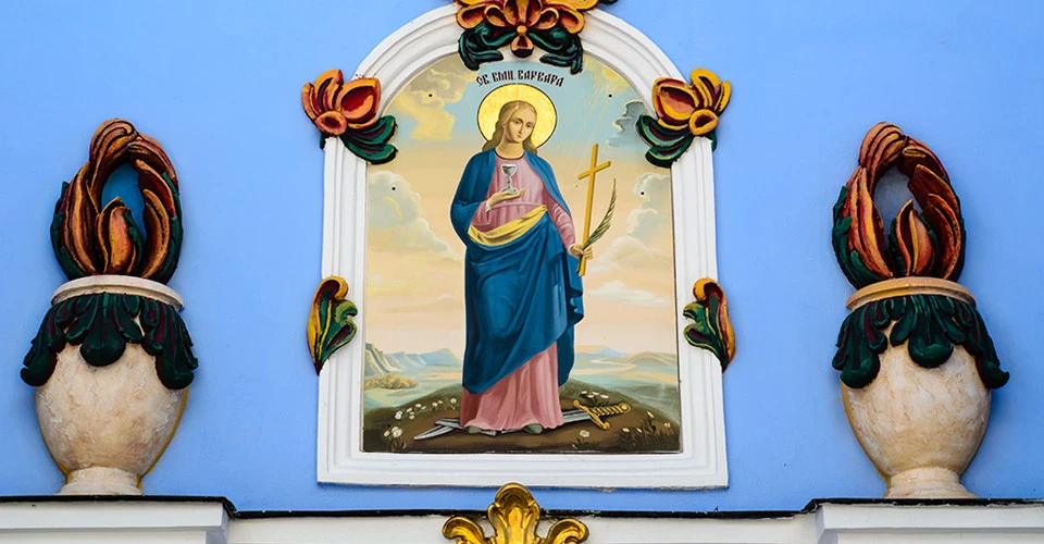 Михайлівський Золотоверхий собор, фреска Святої Варвари, фото: gettyimages Тут зберігали мощі святої великомучениці Варвари, що їх привезла перед шлюбом із князем Святополком Ізяславичем дочка візантійського імператора Олексія I Комніна. У XVII столітті за кошти гетьмана Богдана Хмельницького дерев’яний дах замінили на бляшаний. Головну браму визолотили. Ще через століття за сприяння Івана Мазепи церкву перебудували в бароковому стилі. Від початкової споруди залишилася тільки головна баня, частина стін і вівтарні абсиди. Натомість сам монастир значно розширили. Оновлену Михайлівську церкву перетворили на собор.Як знищили Михайлівський Золотоверхий