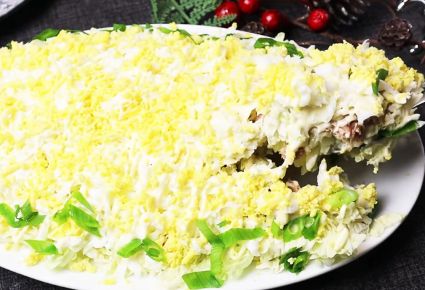 Стандартний салат "Мімоза" всі знають, багато хто вже навіть сумує за ним. Варіант з тунцем, пекінською капустою та плавленими сирками додає легкості, ллє свіжий струмінь у добру стару класику.