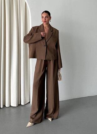 Найлегше почати з поєднання зі структурованим блейзером. Стилісти радять обирати модель з чіткими плечима й заправляти футболку чи сорочку всередину — так зберігаються пропорції. Сорочка теж чудово працює — застебніть до коміра для офісу або залиште кілька ґудзиків розстебнутими для невимушеного вигляду. Вечірній варіант — легкий жакет поверх топа.