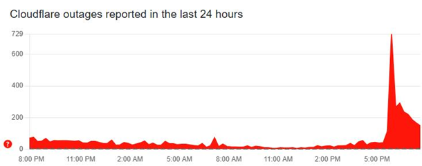 Статистичний портал Downdetector у п'ятницю, 21 листопада зафіксував ще один масштабний збій на серверах Cloudflare.