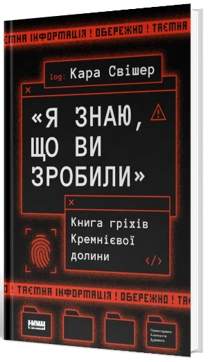 Кара Свішер. "Я знаю, що ви зробили". Книга гріхів Кремнієвої Долини. – К.: Наш Формат, 2024Авторка цієї книжки так само робить свій вибір, причому майже одразу. У 2006 році Марк Цукрберґ, до якого вона, перспективна репортерка, прийшла на зустріч, каже їй: "Чув, ти вважаєш мене мудаком", а в 2022 році вона, вже головна редакторка New York Magazine, отримує від Ілона Маска імейл із заголовком "Ти - скотина". Таким чином, у своїй відвертій книжці "Я знаю, що ви зробили" Кара Свішер - легенда світу Кремнієвої долини - розповідає про становлення техногігантів, ділиться внутрішньою кухнею і масою цікавих інсайдів про кожного з них. З притаманною їй прямолінійністю авторка виводить на чисту воду лицемірство, корпоративну недбалість, інфантильність та нарцисизм найвідоміших людей зі світу Big Tech. Судячи з її розповіді, виходить, що нам обіцяли, що технології змінять світ на краще, а натомість з’явилися лише нові впливові гравці, чиї дії роз’єднали суспільство, ослабили уряди й породили ізоляцію, ненависть і залежність. Тим часом дотепна та їдка оповідь авторки показує, як ідеали інновацій спотворилися слоганами "Рухайся швидко й ламай усе", а провідні компанії перетворилися на "цифрових торговців зброєю". "Те, куди рухається технологія, залежить від тих, хто ухвалює рішення, - вважає авторка. - Якщо це залишиться в руках малої групи відірваних від реальності техномільярдерів — я турбуватимуся. Якщо ж це буде різноманітна група людей, готових слухати та йти на компроміси, я налаштована значно оптимістичніше. Єдина річ, яка стосується всіх тих, хто зроблений із м’яса, і в якій я можу бути впевнена, — це те, що аналогове життя кожного з нас зрештою завершиться. Навіть якщо цифрова присутність залишиться ще на багато років. Це був, звісно, найважливіший урок, який я засвоїла ще в юному віці, коли раптово помер мій батько. Він думав, що його кар’єра стрімко злетить, а потім одного дня просто впав і все. Це вплинуло на все, що я робила потім. А це означає, що в мене немає часу сидіти й плакати. У вас теж. Ні в кого його немає".