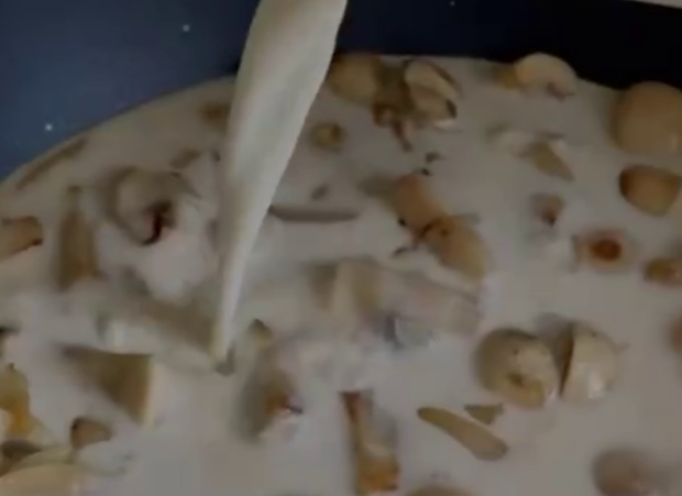Змішуємо вершки, склянку бульйону, воду та борошно (або крохмаль), щоб не було грудочок.