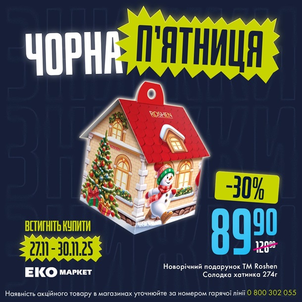 “На Чорну п’ятницю ми традиційно робимо акцент на товарах, які люди купують найчастіше - напої, кава, цукерки, печиво та навіть побутові товари, такі як кухонні губки чи туалетний папір. Все це наші гості зможуть купити з 27 по 30 листопада з відчутними знижками”, - розповідають у мережі ЕКО МАРКЕТ.
