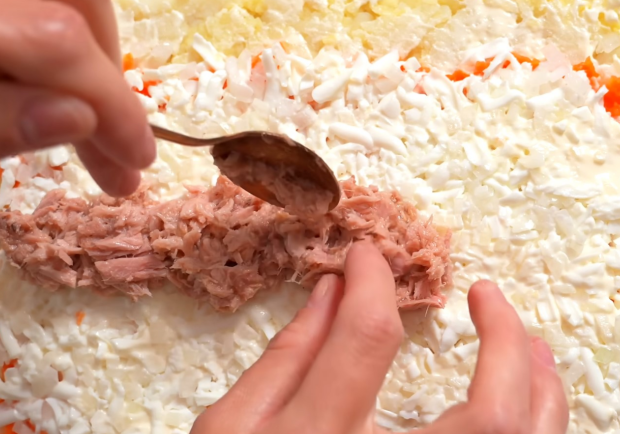 Посип тертим жовтком і отримаєш той самий фірмовий «мімозовий» сонячний шар, який робить страву святковим вже одним видом.