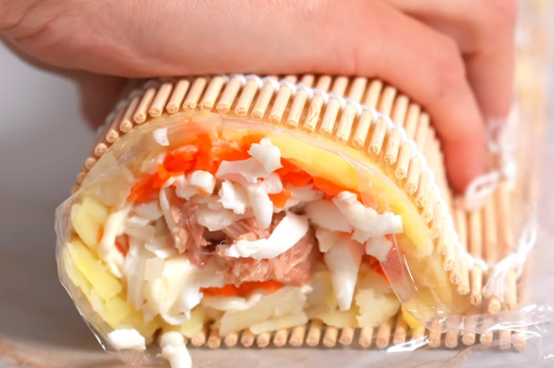 Візьми харчову плівку або килимок для суші – з ним ідеально скрутити.