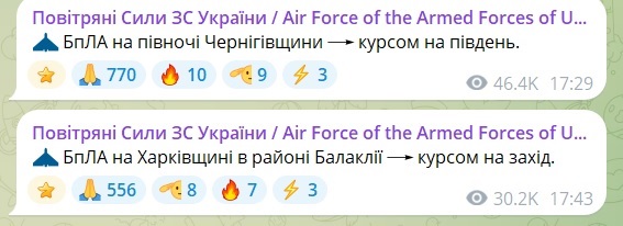 Повітряні Сили ЗСУ вже повідомили, що перші Шахеди залетіли в повітряний простір України.