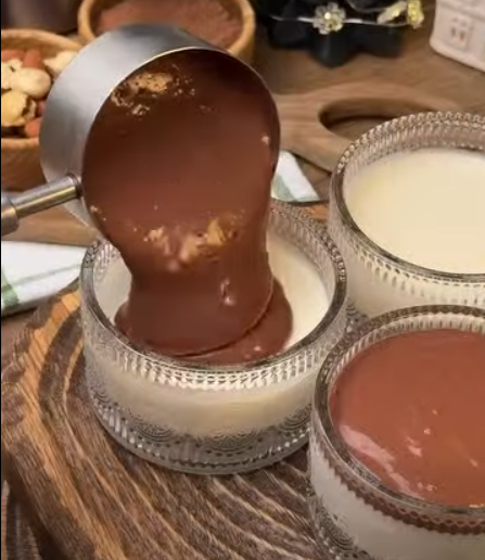 Розлийте отриману білу масу в форми, але не заповнюйте їх до кінця – залиште місце для шоколадного шару. Сховайте форми в морозилку на 10-15 хвилин, щоб білий шар застиг.