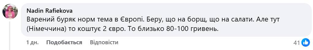 Автор фото Олег Гонцов, який помістив знімок продукту в мережу, висловив своє обурення. «Я втратив дар мови, коли побачив варений буряк по 150 грн за кілограм. Люди, ну ви вже буряка не можете напхати, ну що відбувається зі світом? Ми вже практично як в Європі, готувати скоро не будемо нічого, все в готовому магазині продається», – написав він.