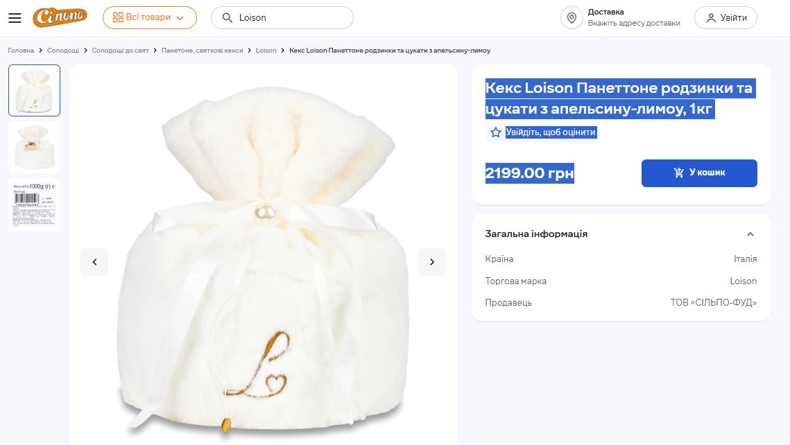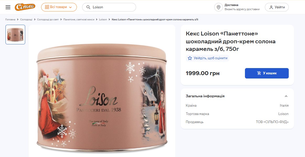 У преміальному сегменті різдвяних солодощів ціни сягають рекордних позначок. Зокрема, італійські кекси від виробника Loison, який позиціонується як елітний, коштують: