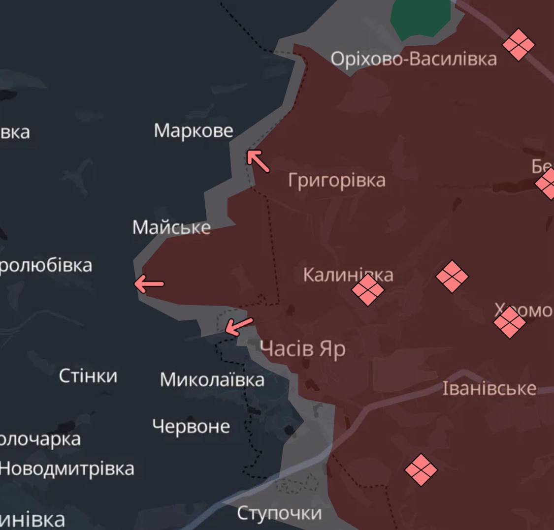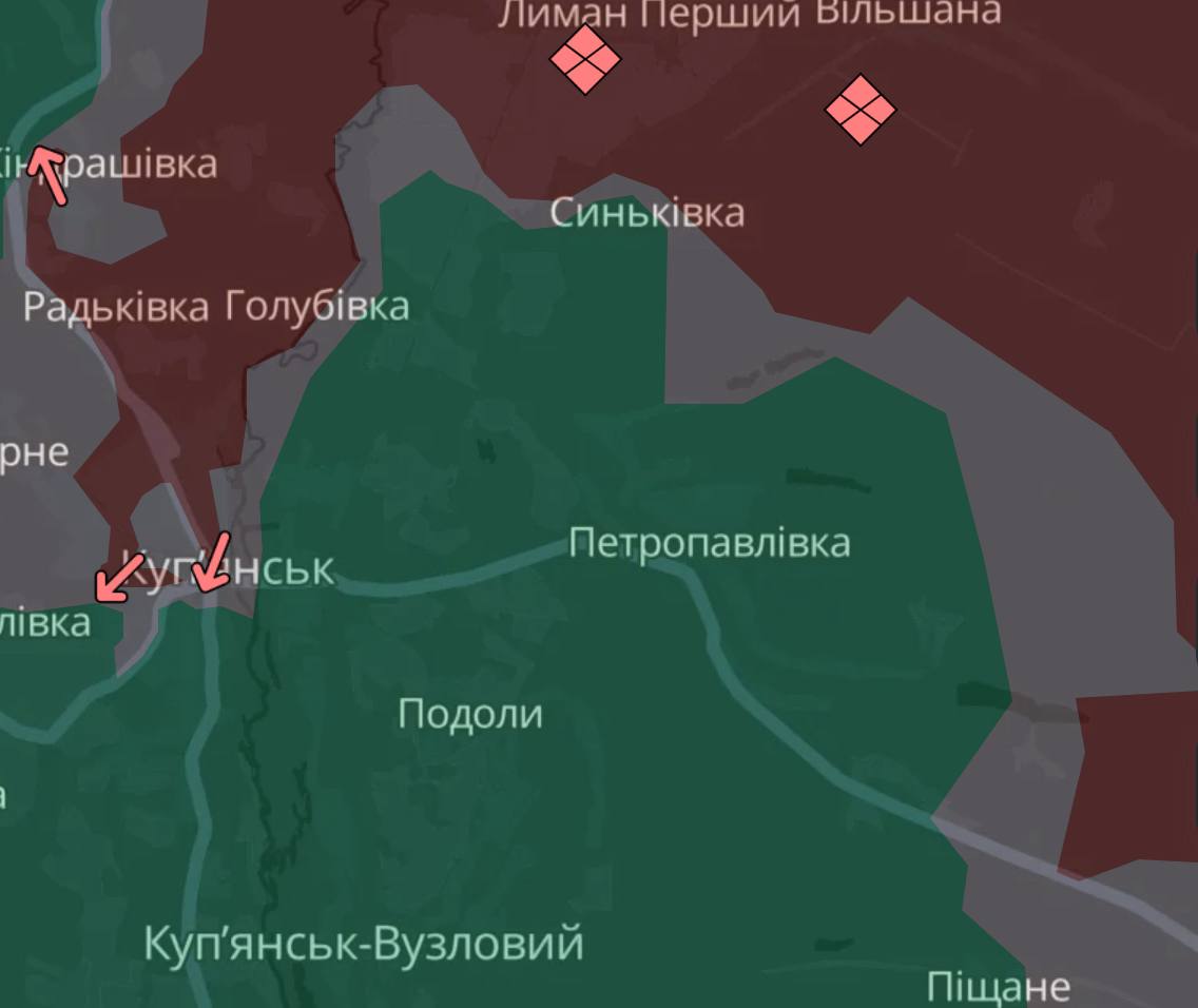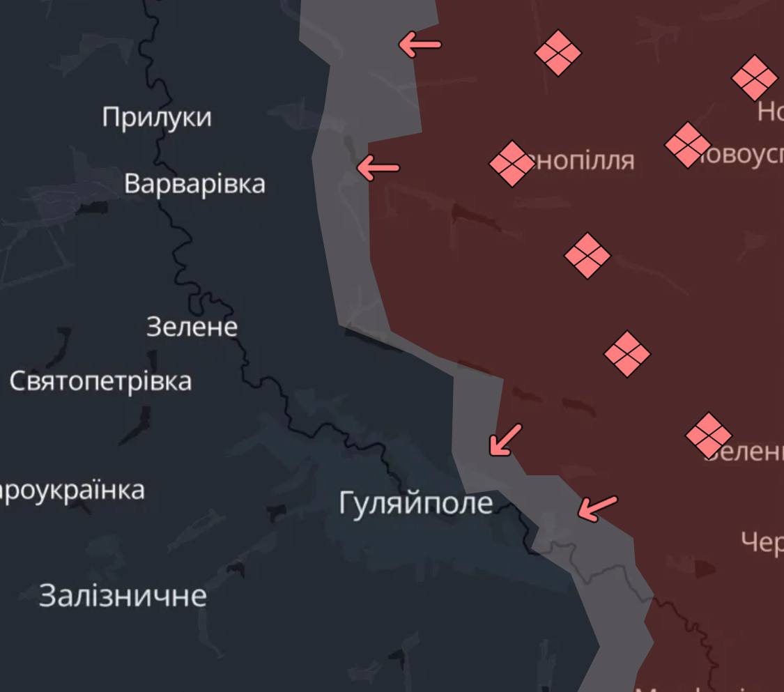 Сили оборони відбили 13 штурмових дій у районах населених пунктів Греківка, Новий Мир, Мирне та у бік населених пунктів Ставки, Дробишеве, ще два боєзіткнення тривають до цього часу.