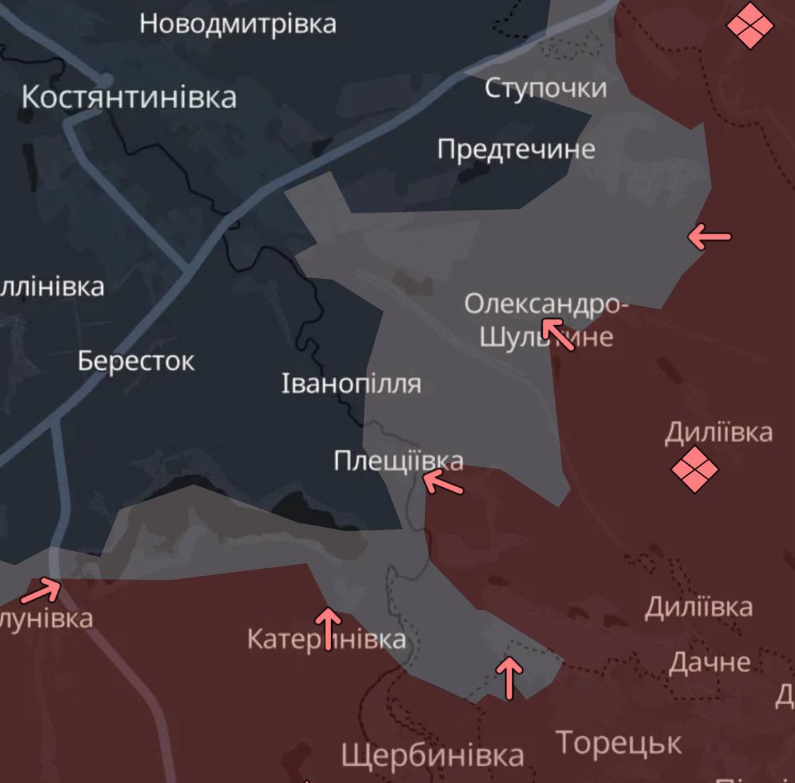 Сьогодні відбулося 18 бойових зіткнень. Ворог намагався штурмувати позиції українських підрозділів поблизу Костянтинівки, Олександро-Шультиного, Щербинівки, Плещіївки, Іванопілля, Русиного Яру та у бік Софіївки. Два боєзіткнення на даний час тривають.