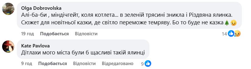 Нагадаємо: у центрі міста Бровари на Київщині біля арки центрального входу в парк «Перемога» традиційно засвітили новорічну ялинку, яку встановили до Дня святого Миколая. Це рішення, а також зовнішній вигляд штучної ялинки, спричинило значний резонанс та гостру дискусію серед мешканців міста у соціальних мережах.