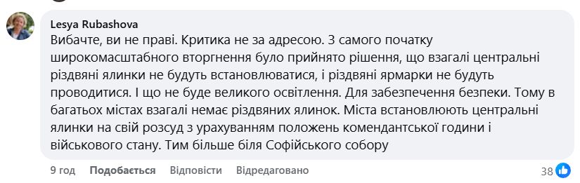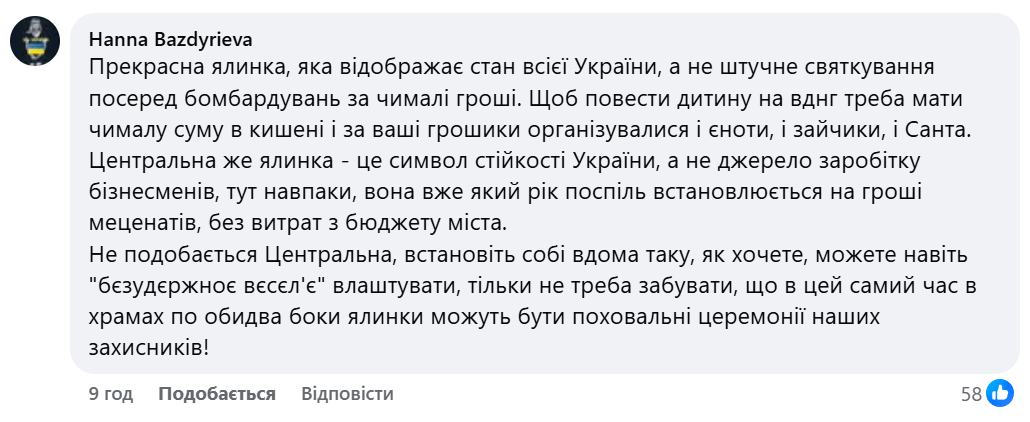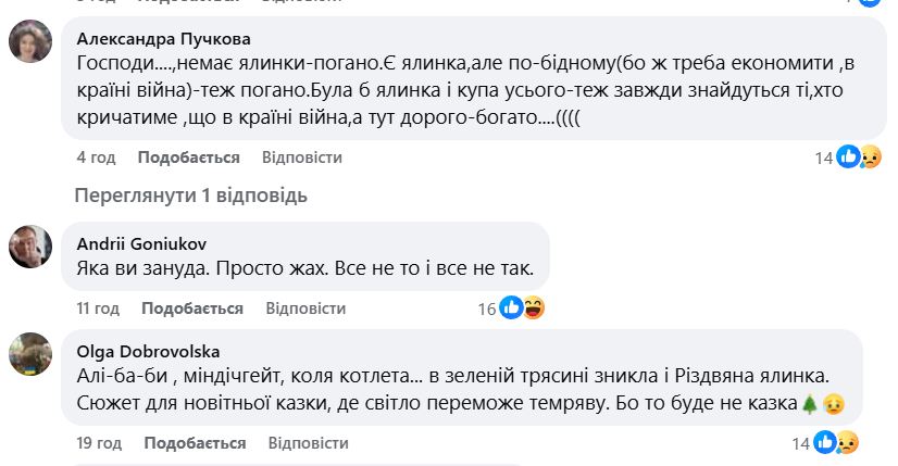 Реакція користувачів на пост Семенюк була неоднозначною. Думки традиційно розділилися одні закликають до помірності під час війни, інші вимагають свята для дітей та підтримки культурної сфери.
