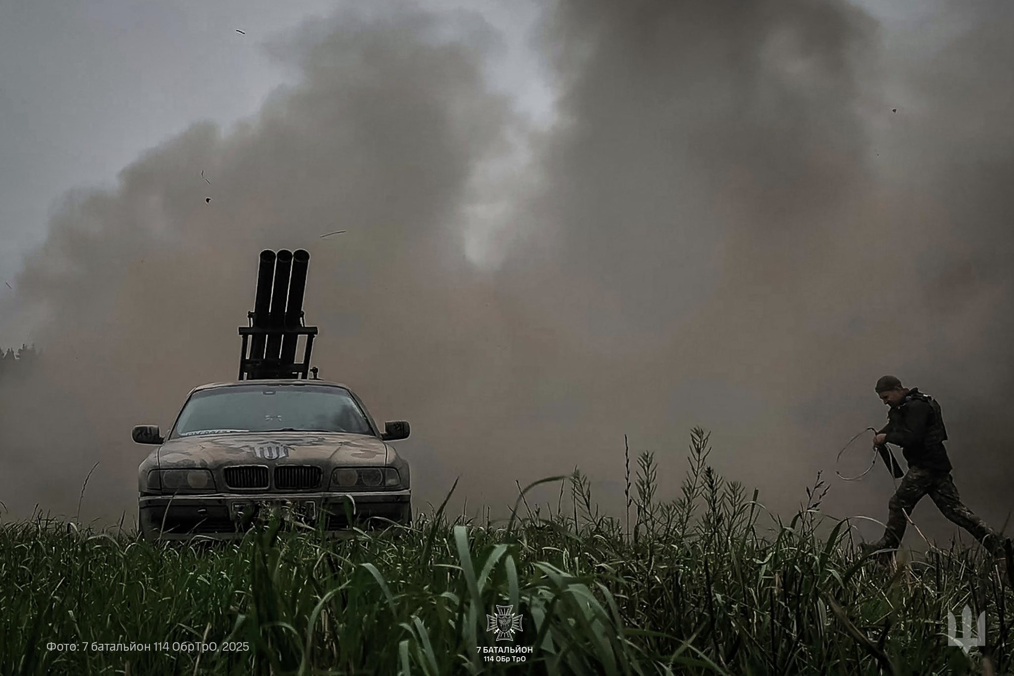 Боєць 7-го батальйону 114 окремої бригади Сил територіальної оборони ЗСУ Сергій на позивний «Сержик» створив єдину у світі реактивну систему, встановлену на BMW-седані. Про це повідомляє «Главком» із посиланням на 15-й армійський корпус.