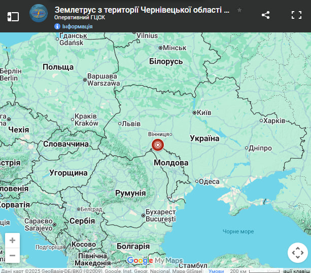 «15 грудня 2025 року Головним центром спеціального контролю зареєстровано землетрус в Дністровському районі Чернівецької області, Сокирянська ТГ, магнітудою 2,2 (за шкалою Ріхтера), на глибині 2 км», – йдеться у повідомленні центру. Відомо, що цей землетрус кваліфікували як ледве відчутний.
