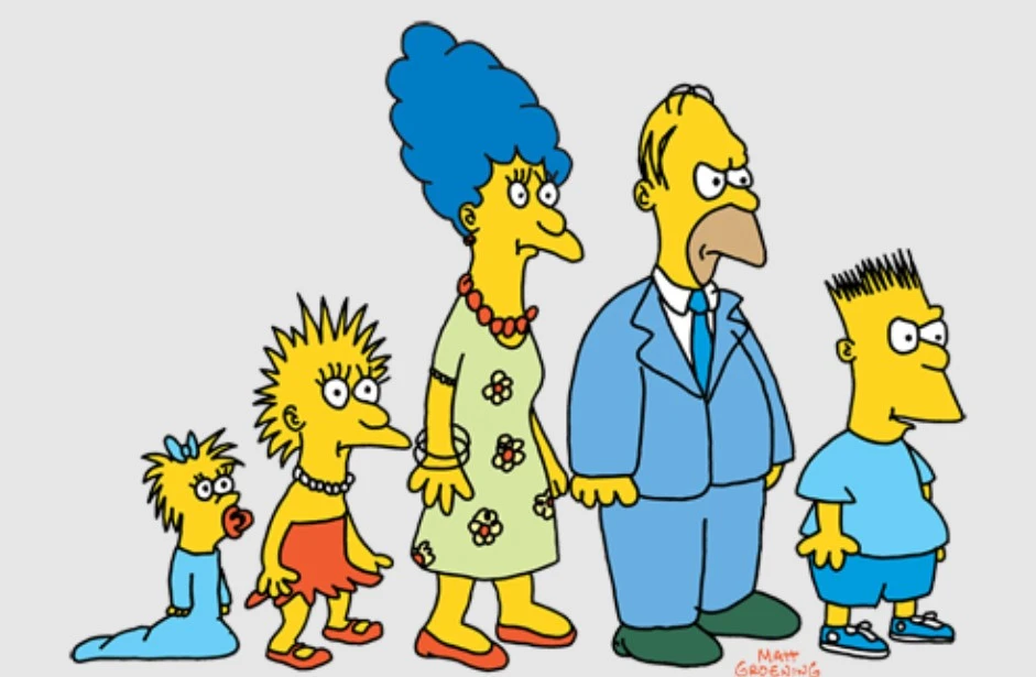 перші варіанти вигляду сім'ї Сімпсони, фото: ВікіпедіяІдея серіалу належить американському карикатуристу Метту Ґрейнінґу, який у 1987 році створив родину Сімпсонів для коротких анімаційних вставок у "Шоу Трейсі Ульман". Ґрейнінґ назвав персонажів на честь членів своєї родини: батько – Гомер, мати – Мардж, сестри – Ліза та Меґґі, а себе замінив на бунтаря Барта (анаграма від "brat" – "шибеник").Продюсер Джеймс Л. Брукс побачив потенціал і запропонував розвинути ідею в окремий серіал. Разом із Семом Саймоном вони удосконалили персонажів і сценарії. Перші серії були досить грубо намальовані, бо Ґрейнінґ надсилав прості ескізи, які аніматори просто обводили. Прем'єра відбулася як різдвяний спецвипуск, бо першу заплановану серію переробляли через проблеми з анімацією.Цікаво, що ці перші серії, та й сезони загалом, сприйняли неоднозначно. Бо деякі критики вважали шоу надто грубим і сатиричним, а Барта – поганим прикладом для дітей. Політики казали, що американська сім не має бути схожа на сім’ю Сімпсонів. Однак аудиторія швидко зростала, і "Сімпсони" стали хітом, особливо серед молоді, їх показували у прайм-тайм на телебаченні. Шлях до світової слави: феномен, який не зупиняється