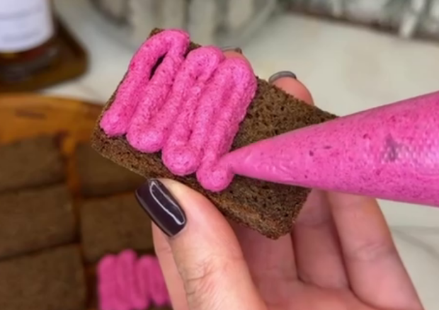 Підсушіть скибочки бородинського хліба до золотистої скоринки – вони стануть хрумкою основою для майбутнього шедевра.